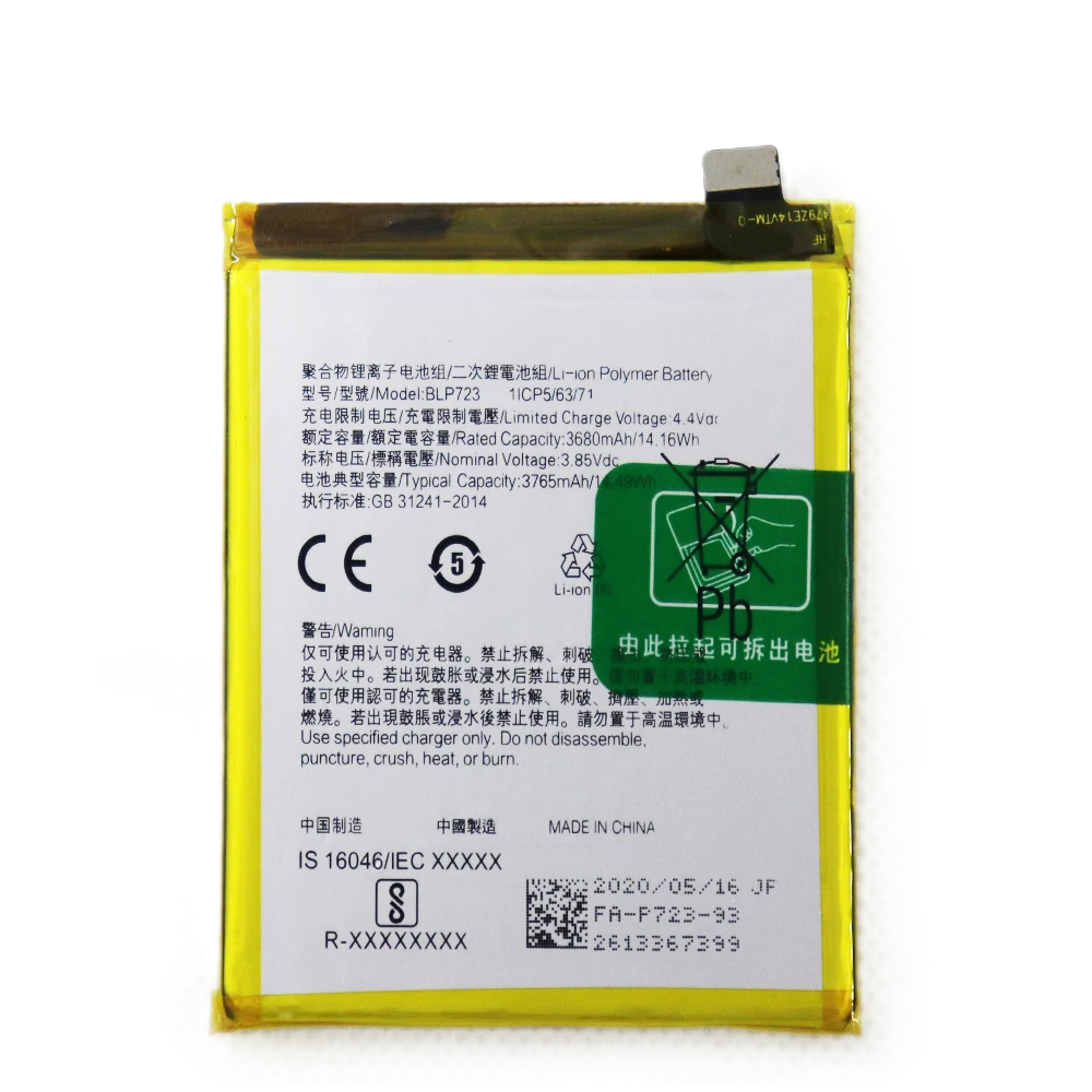 Аккумулятор для Realme X BLP723 емкостью 3680 mAh является важной частью вашего устройства, обеспечивая стабильную и долговечную работу. Надежная энергия гарантирует длительное использование смартфона без необходимости частой подзарядки. Этот аккумулятор точно подходит для модели Realme X, что обеспечивает высокую совместимость и бесперебойную работу вашего устройства.